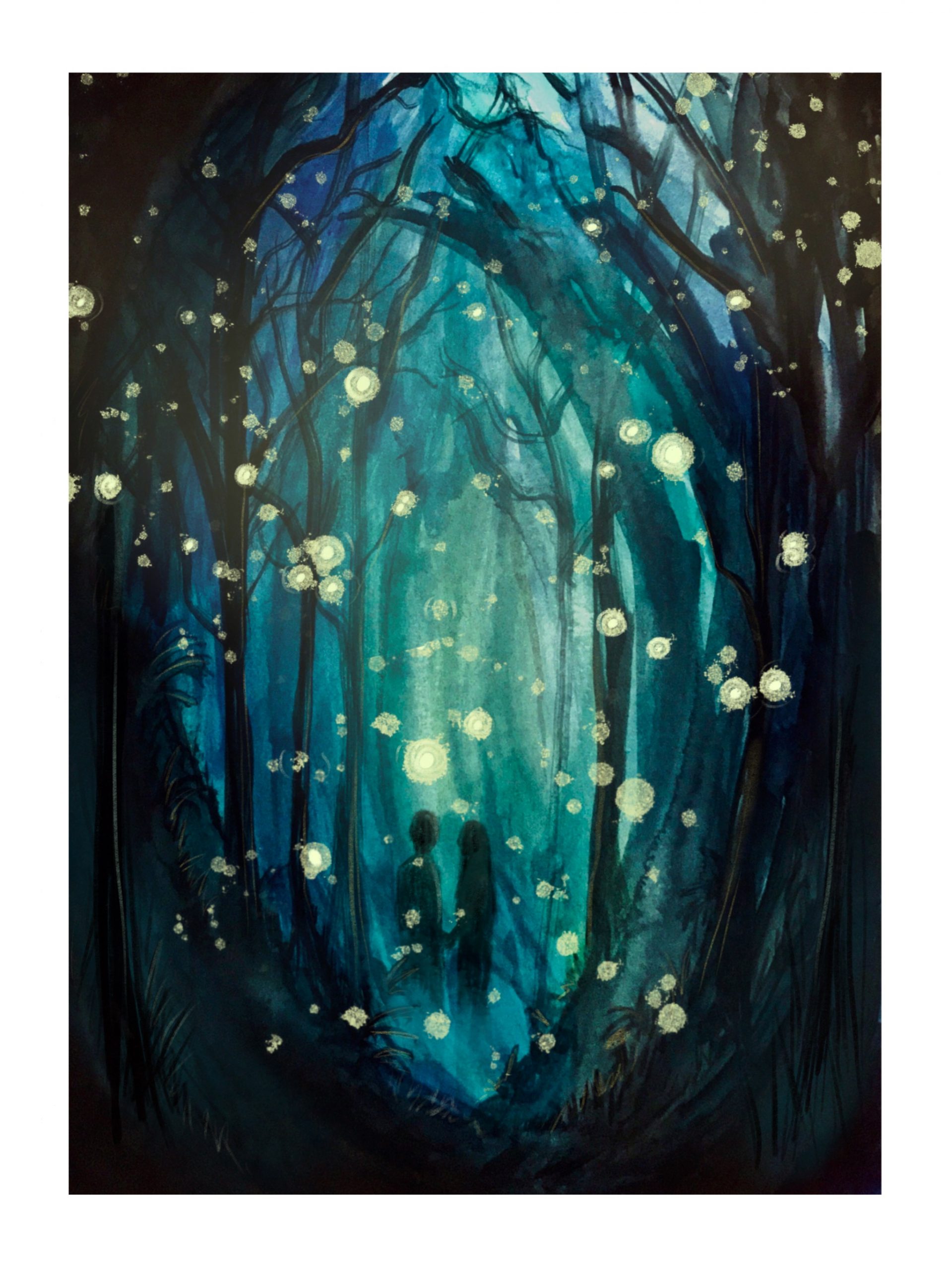 Lady night, she stretches her dark fingers, and I begin to glow. LIGHT! light. In green woods where wooing lovers linger I blink to say hello.